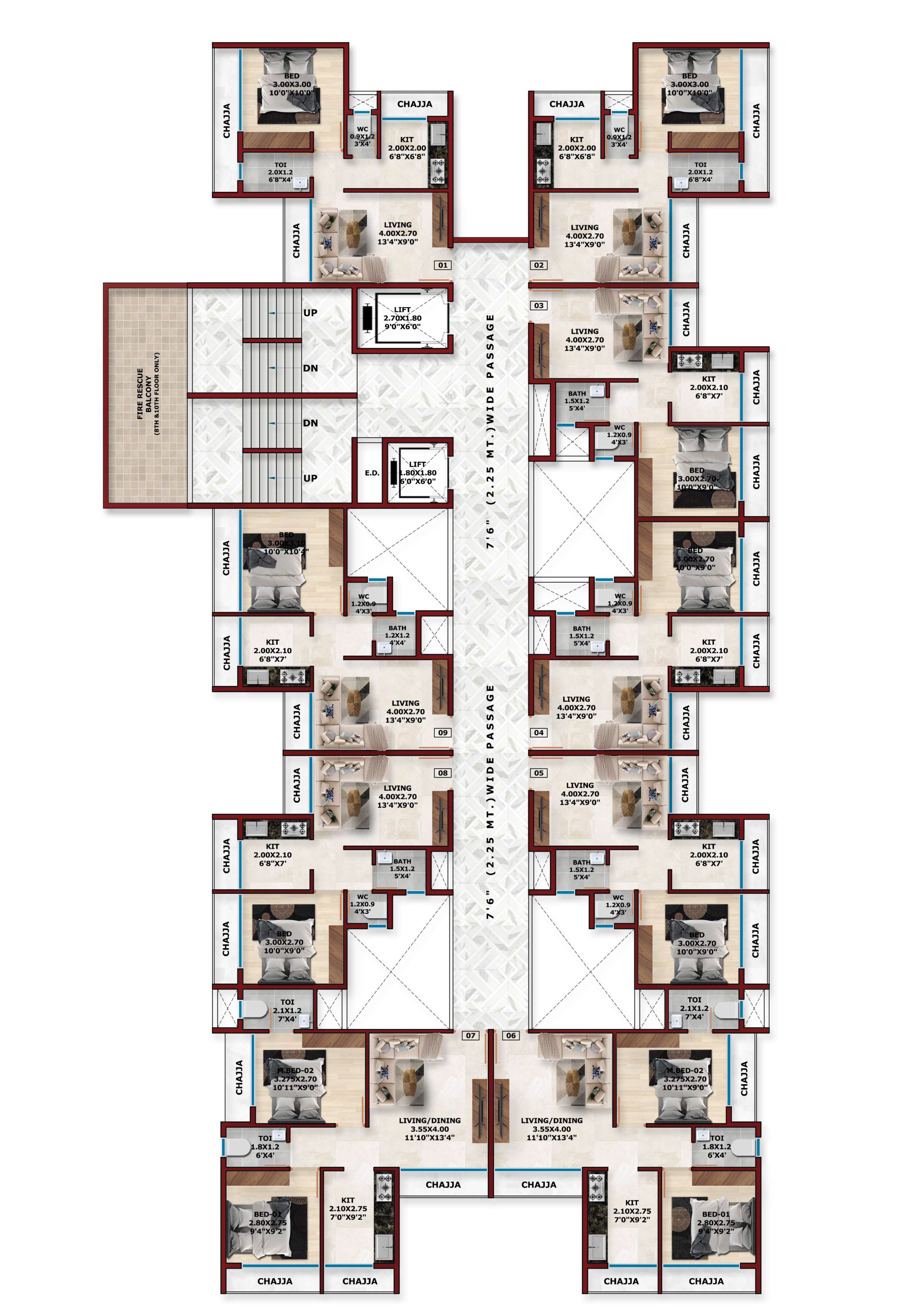 • Smartly Designed Flats With Maximum Natural Light And Ventilation.